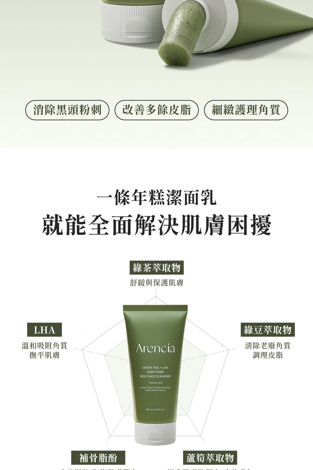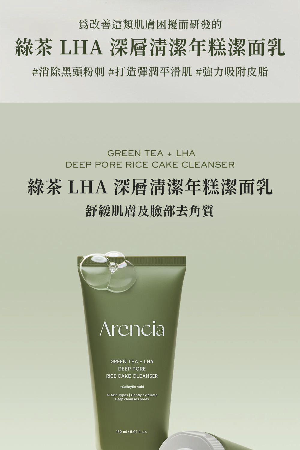 綠茶 LHA 深層清潔年糕潔面乳